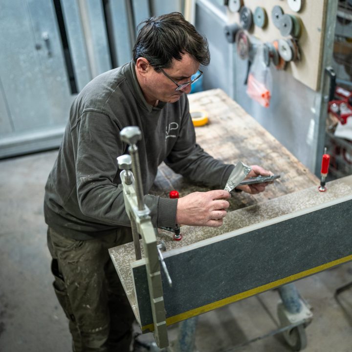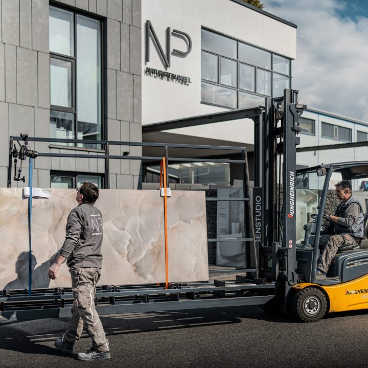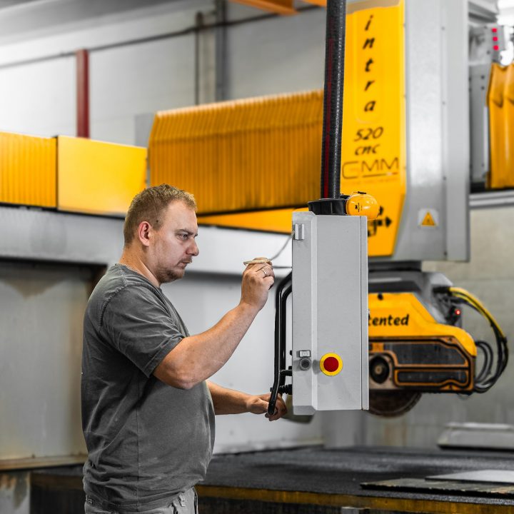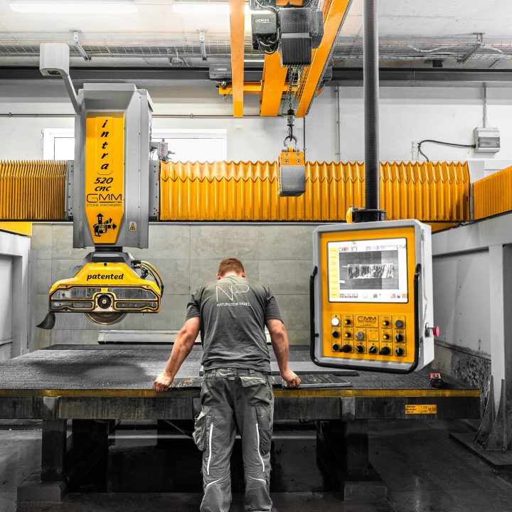 Ob elegante Küchenarbeitsplatten, individuelle Fensterbänke, charakterstarke Treppenstufen oder architektonisch anspruchsvolle Fassaden – in unserer Produktion wird jeder Stein mit Liebe zum Detail verarbeitet. Dabei arbeiten unsere Spezialisten mit hochpräzisen CNC-Fräsen und ihrem geschulten Auge, um aus jedem Rohblock ein Meisterstück zu fertigen.