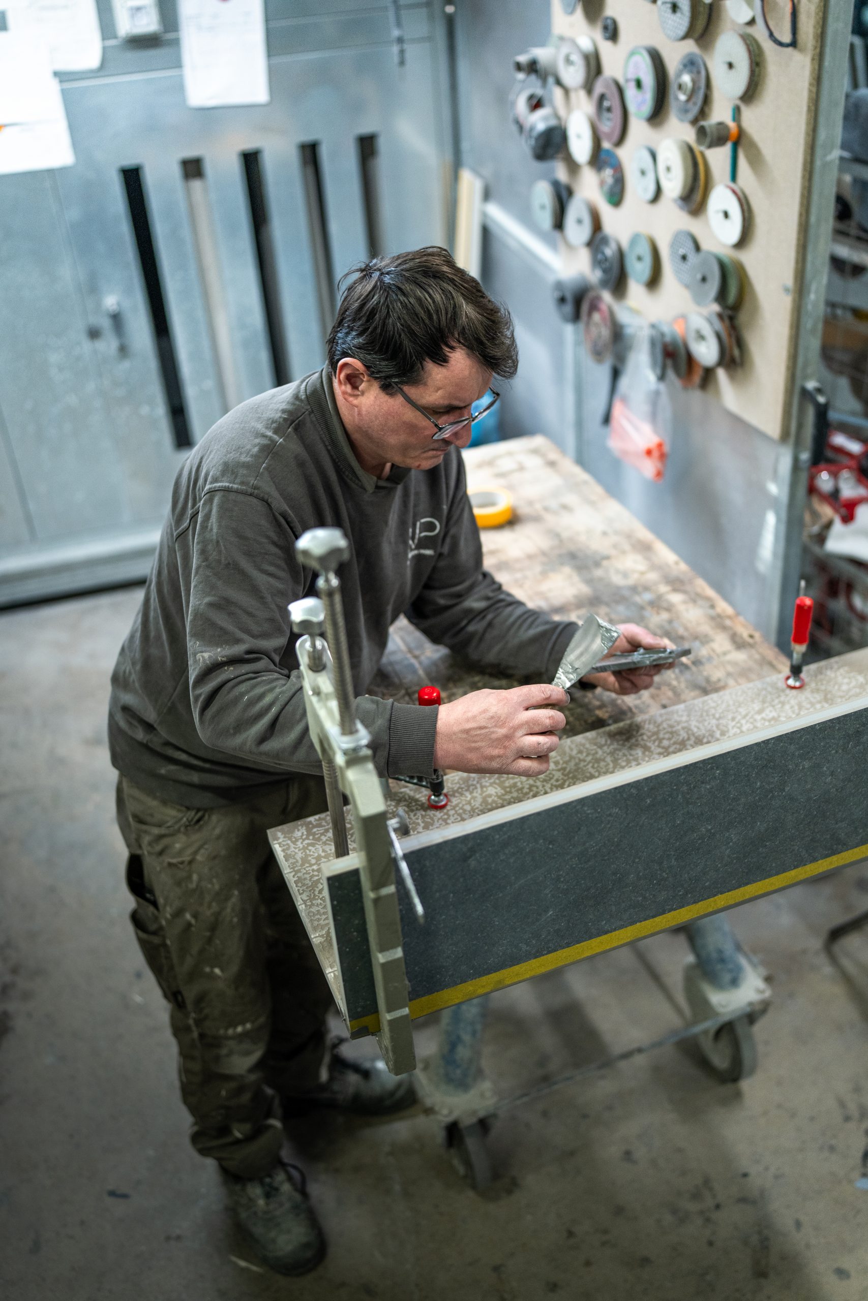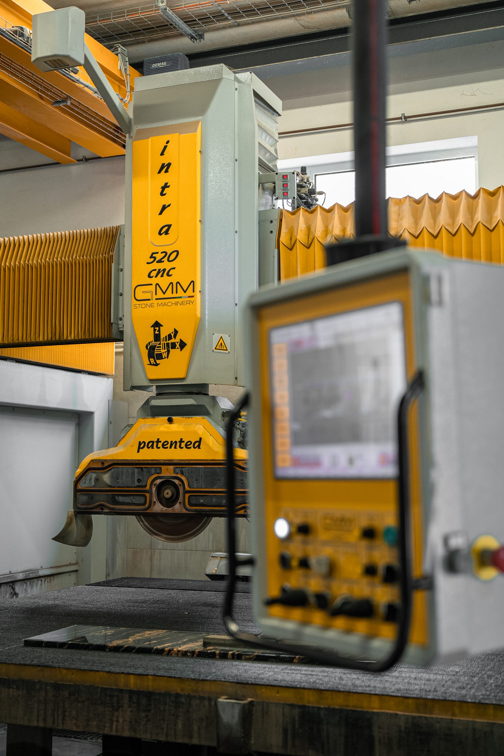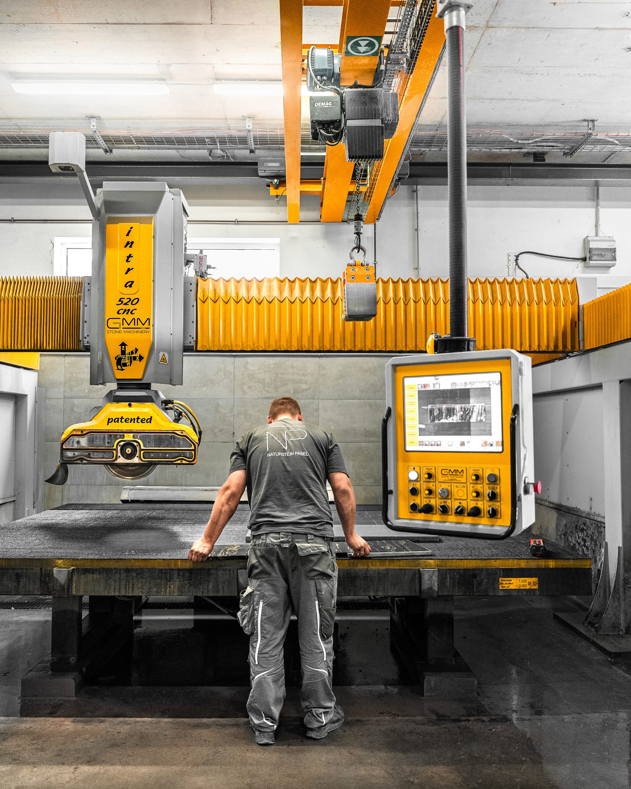 Ob elegante Küchenarbeitsplatten, individuelle Fensterbänke, charakterstarke Treppenstufen oder architektonisch anspruchsvolle Fassaden – in unserer Produktion wird jeder Stein mit Liebe zum Detail verarbeitet. Dabei arbeiten unsere Spezialisten mit hochpräzisen CNC-Fräsen und ihrem geschulten Auge, um aus jedem Rohblock ein Meisterstück zu fertigen.